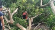 Kadis DLHK Aceh Besar Turun Langsung Bersihkan Pohon Tumbang di Simpang Lubok Ingin Jaya