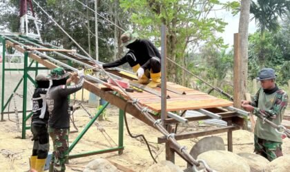 Aceh Tamiang – Menjelang Hari Raya Idul Fitri 1447 Hijriah, TNI terus mempercepat pembangunan Jembatan Gantung…