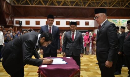 Banda Aceh — Gubernur Aceh, Muzakir Manaf (Mualem), melantik dan mengambil sumpah sejumlah pejabat pimpinan tinggi…