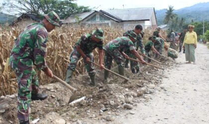Kutacane – Babinsa Posramil Lawe Bulan jajaran Kodim 0108/Aceh Tenggara bersama warga masyarakat melaksanakan kegiatan gotong…