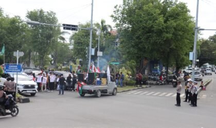 Banda Aceh — Aksi unjukrasa dari KAMMI Banda Aceh di tugu Simpang Lima mendapat pengawalan puluhan…
