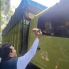 Aceh Jaya — Wakil Gubernur Aceh Fadhlullah, menyapa supir truk berpelat luar Aceh yang melintas di…
