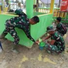 Aceh Tamiang — Personel Batalyon Infanteri Teritorial Pembangunan (Yonif TP) 899/Bata Satya Gardapati melaksanakan renovasi Sekolah…