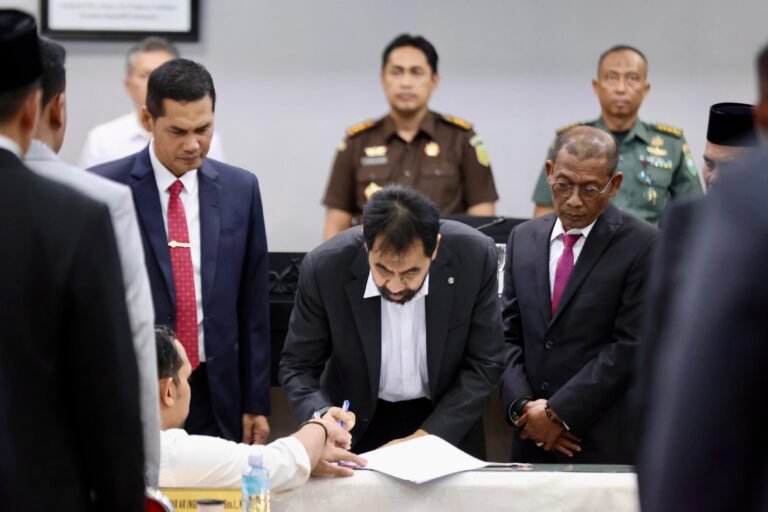 Penandatanganan Berita Acara Persetujuan Bersama berlangsung khidmat dan tertib. Setelah prosesi selesai, hadirin dipersilakan duduk kembali.