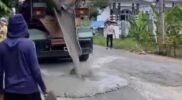 Gotong Royong Warga Montasik Tambal Jalan Berlubang, Puluhan Titik Berhasil Diperbaiki
