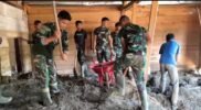 Yonif TP 856/SBS Gotong Royong Bersihkan Rumah Warga Terdampak Banjir Aceh Tengah