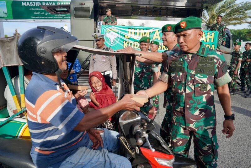 Banda Aceh – Komando Daerah Militer Iskandar Muda (Kodam IM) kembali meneguhkan komitmennya dalam pengabdian kepada masyarakat melalui kegiatan sosial bertajuk “Jumat Berkah”. Kegiatan penuh makna ini dilaksanakan di depan Gerbang Masjid Raya Baiturrahman Banda Aceh, pada Jumat (17/10/2025), sebagai salah satu wujud nyata kepedulian Kodam IM terhadap sesama, khususnya masyarakat kecil yang membutuhkan.