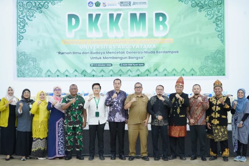 Banda Aceh – Kepala Kelompok Staf Ahli (Kapoksahli) Pangdam Iskandar Muda, Brigjen TNI Bambang Sulistyo Hery, S.Sos., M.Han., menghadiri kegiatan Pengenalan Kehidupan Kampus bagi Mahasiswa Baru (PKKMB) Universitas Abulyatama sekaligus memberikan pembekalan materi Bela Negara kepada 870 mahasiswa baru Universitas Abulyatama. Kegiatan tersebut berlangsung di Gedung Serbaguna Nyak Syeh, Selasa (07/10/2025).
