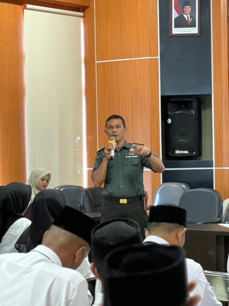 Banda Aceh – Sebagai bagian dari peningkatan kapasitas sumber daya manusia dalam jajaran Satuan Polisi Pamong Praja dan Wilayatul Hisbah, Kapten Inf Riffal selaku Katim Proddok Penerangan Kodam Iskandar Muda hadir sebagai pemateri pada kegiatan Pembekalan Dasar Satpol PP dan WH bagi peserta Pegawai Pemerintah dengan Perjanjian Kerja (PPPK) Tahun 2025. Kegiatan tersebut berlangsung di Aula Lantai 3 Satpol PP dan WH Aceh, Kamis pagi (13/11/2025).
