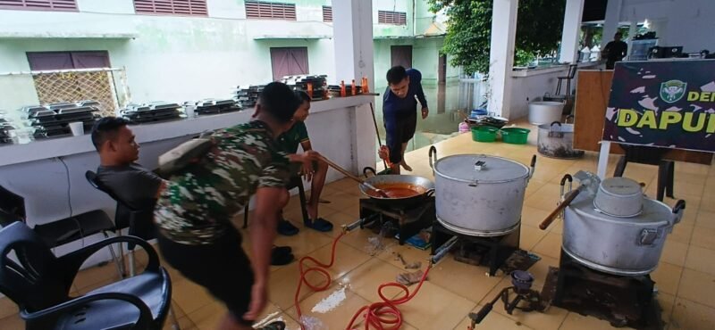 Aceh Utara – Intensitas hujan tinggi yang mengguyur wilayah Aceh Utara dan Kota Lhokseumawe selama beberapa hari terakhir menyebabkan ribuan rumah terendam banjir. Sejumlah kecamatan mengalami lumpur tebal, tingginya debit air, serta kerusakan fasilitas umum. Menyikapi kondisi tersebut, Prajurit Kodam Iskandar Muda melalui Korem 011/Lilawangsa bergerak cepat mendirikan dapur lapangan untuk memastikan kebutuhan pangan warga terdampak terpenuhi Jum’at, (28/11/2025).