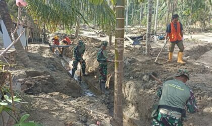 Aceh Tenggara – Dalam upaya menjaga kebersihan lingkungan sekaligus mencegah banjir dan penyebaran penyakit, anggota Posramil…