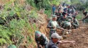 Prajurit Yonif 114/SM dan Warga Gotong Royong Buka Jalan Longsor di Bener Meriah