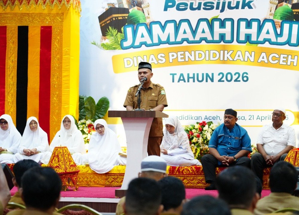 Sebanyak 18 calon jamaah haji yang terdiri dari enam laki-laki dan 12 perempuan mengenakan pakaian serba putih. Kepala Dinas Pendidikan Aceh, Murthalamuddin, secara langsung melakukan prosesi peusijuk sebagai bentuk doa dan restu sebelum keberangkatan ke Tanah Suci.