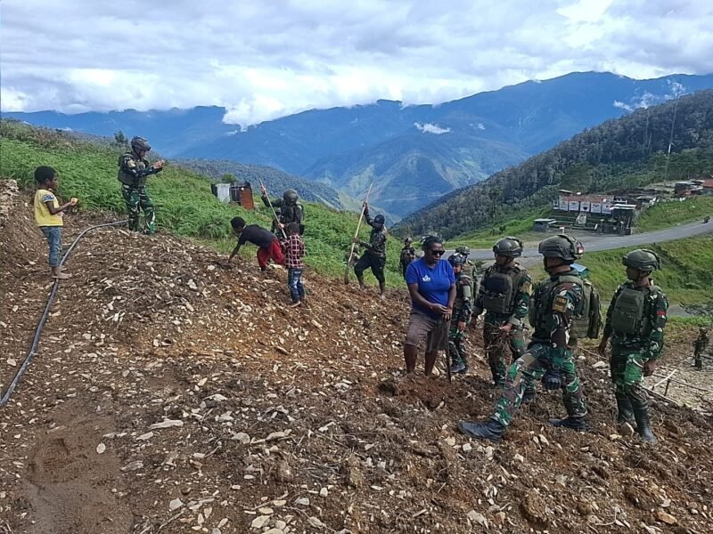 Papua Tengah – Satgas Yonif 112/DJ Pos Puncak Senyum Berbagi Ceria dan Mengedukasi Ketahanan Pangan kepada Masyarakat di Kampung Yarmukum Distrik Tinggi Nambut Kabupaten Puncak Jaya Provinsi Papua Tengah, Selasa (11/11/2025).
